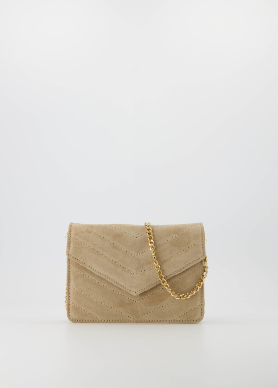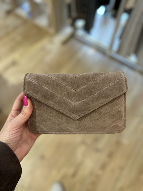 Elegant en toch opvallend, de Laurie crossbody tas is gemaakt in Italië van suède leer met een goudkleurige schakelband. Deze tas kan worden gedragen als clutch bij een avondje uit of je kunt je handen vrij houden en hem als schouder-/crossbody tas dragen. Verkrijgbaar in meerdere kleuren